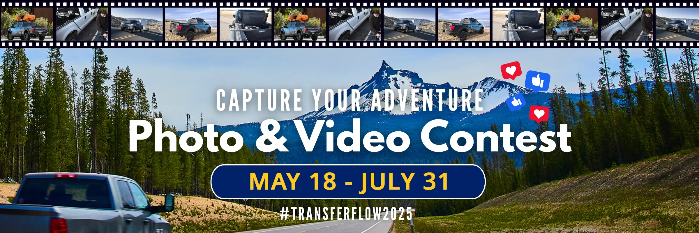 Welcome to the Transfer Flow 2025 Photo & Video Contest! Capture your adventures for the chance to win. Share the best photos and videos of your vehicle and Transfer Flow Fuel system with a backdrop of your amazing adventures, beautiful locales, travel experiences, and thrilling activities!